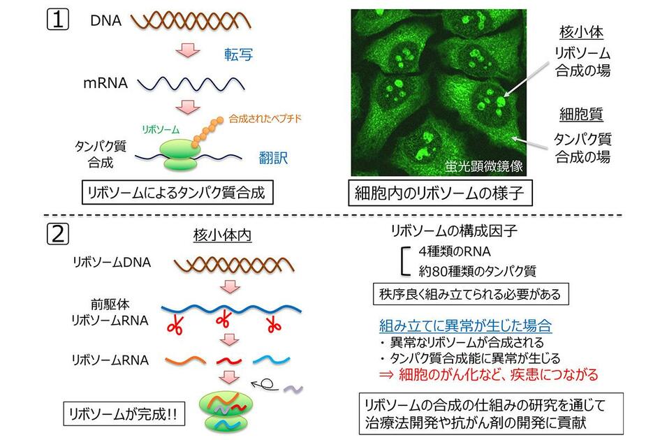 AAA−ATPaseは多くの生物間で保存されているタンパク質ファミリーであり、ATPase活性を用いてタンパク質間の会合・脱会合を制御してます。AAA−ATPaseの一種であるNVL2は主に核小体に局在し、リボソーム前駆体の成熟化プロセスに関与するトランス作用因子とRNA分解複合体エキソソームとの会合・脱会合を制御することでリボソーム生合成過程で機能します。